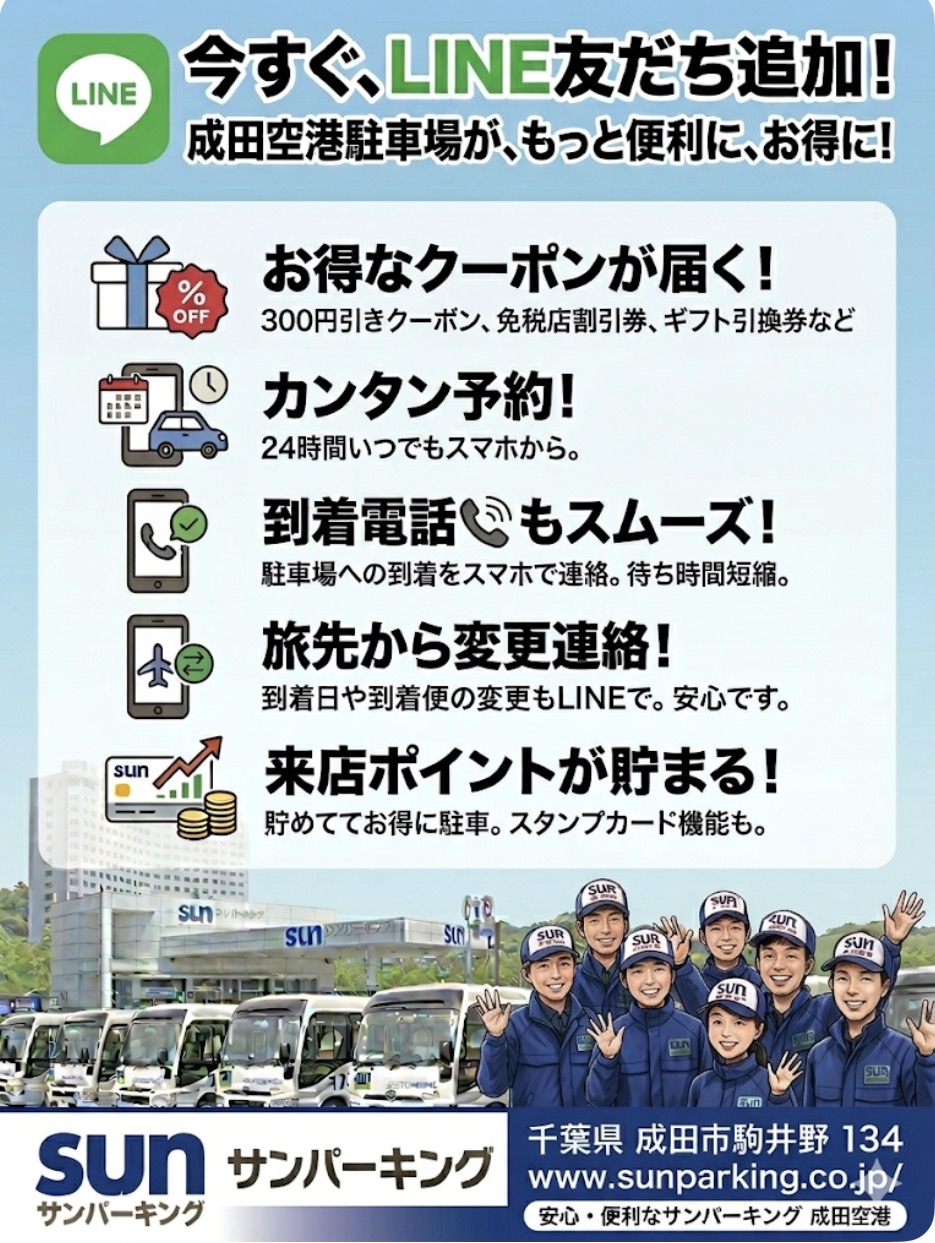成田空港で大切なおクルマを預けるなら創業41年信頼と安心のサンパーキングで決まり!